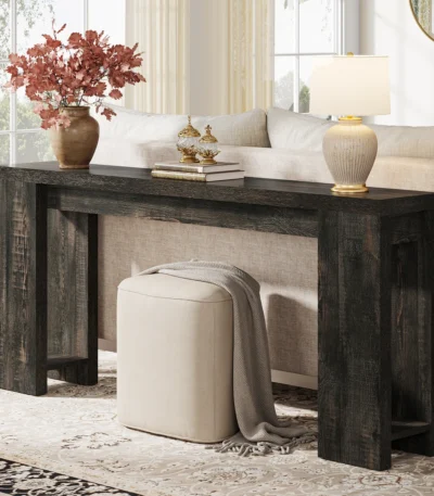 Dyron Extra Long Farmhouse Console Table – Rustic Brown Finish, 70.86” Wide, Scratch & Stain Resistant