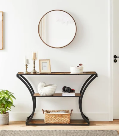 ₨16,500.00Slim yet spacious, this rustic console table fits perfectly in narrow Pakistani homes. With a wood-finish top, black metal frame, and two lower shelves, it’s ideal for organizing entryways, hallways, or behind sofas—all while adding industrial charm to your décor.