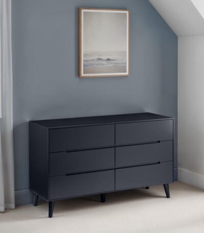 ₨55,000.00This 6-drawer Scandinavian-style chest features a sleek matt anthracite finish, oak-effect tapered legs, and spacious storage. Ideal for Pakistani bedrooms, it doubles as a dresser or modern vanity. Durable, minimalist, and easy to assemble—perfect for homes seeking function and modern flair.