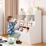 Crafted from durable, child-safe materials, the cabinet is built to withstand daily use and is easy to wipe clean. Its neutral color palette blends well with all types of children’s room decor.