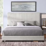 Channeled Headboard Design – Vertical tufting adds tailored texture and dimension.