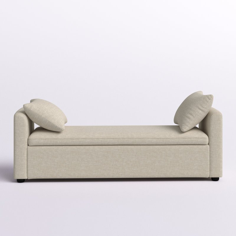 The upholstered seat cushion and included two matching pillows provide added comfort and visual appeal. Whether you’re sitting to put on shoes, resting in a hallway, or creating a cozy reading nook, the Aristides bench offers the comfort of a small sofa with the practicality of a storage solution.