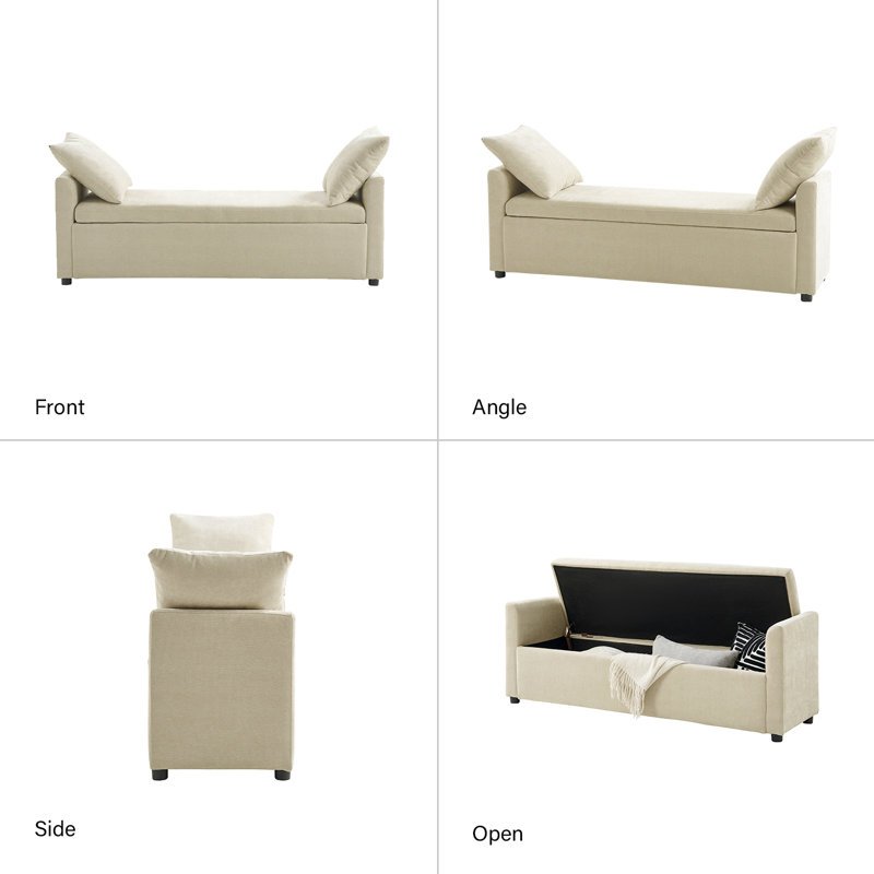 Crafted with a sleek wooden frame, this storage bench is built for both style and durability. The minimalist design is enhanced by soft neutral tones and smooth finishes, making it a perfect fit for Scandinavian, modern, and minimalist interiors. At nearly 60 inches wide, it provides generous seating space and effortlessly accommodates two adults or multiple children.