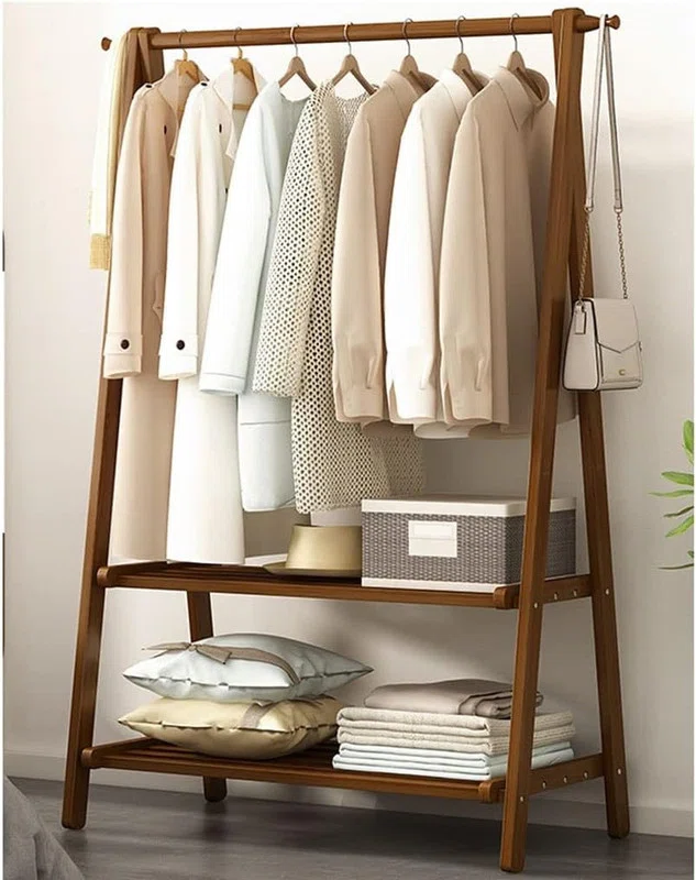 Natural Functionality: Bamboo Clothes Rack with Storage Shelves & Hanging Cover – Smart Storage Furniture Pakistan
