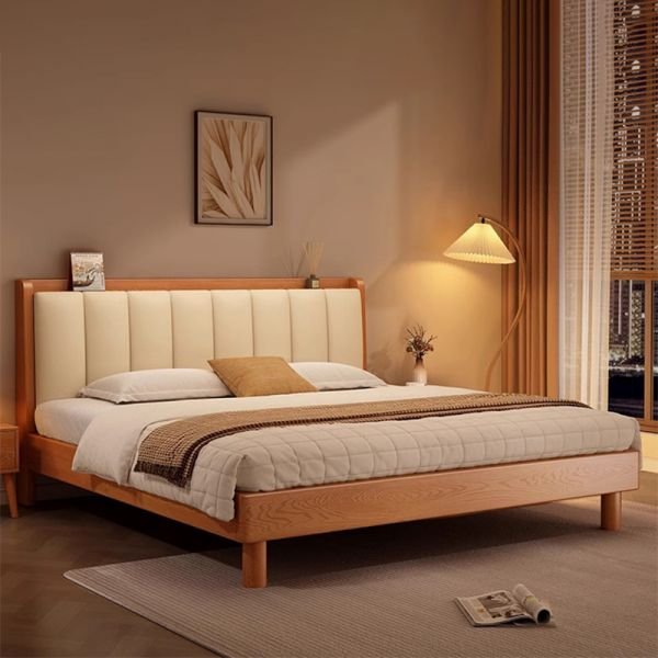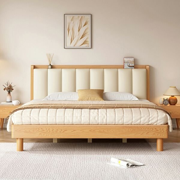 Materials: High-Quality Solid Wood (e.g., Pine, Rubberwood, or Ash) with a Natural Finish, and a sturdy Slat Support System.