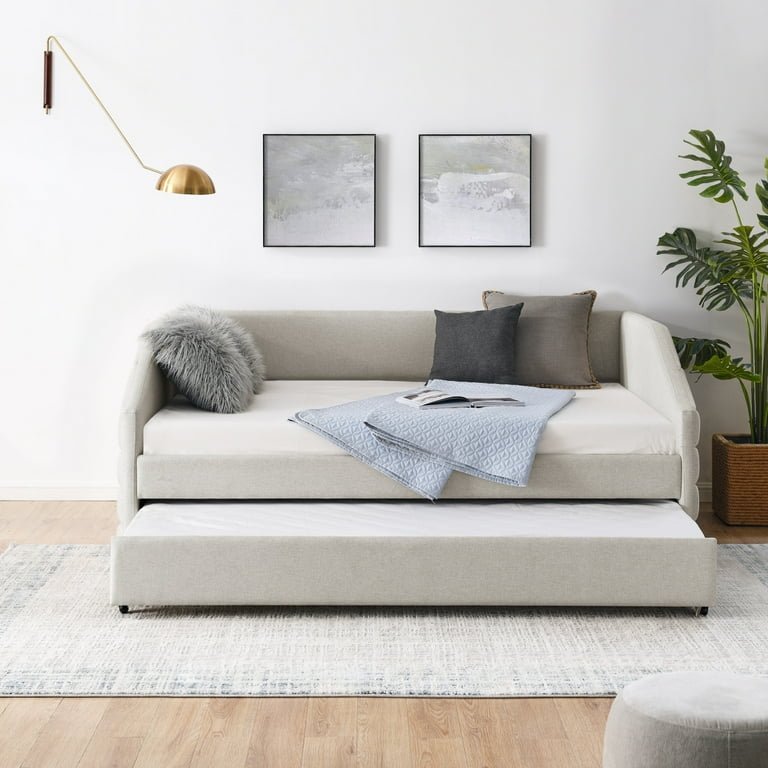 Crafted with a durable wooden frame and foam-padded upholstery, this daybed offers both stability and plush comfort. The pull-out trundle glides out smoothly on wheels, converting the unit into a twin-sized guest bed in seconds. It’s ideal for small apartments, children’s rooms, or a home office that doubles as a guest room.