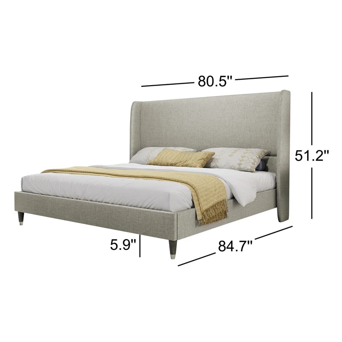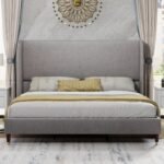 Elevate Your Sanctuary: Elegant Charcoal Grey Upholstered Wingback Platform Bed – Luxurious Bedroom Furniture Pakistan!