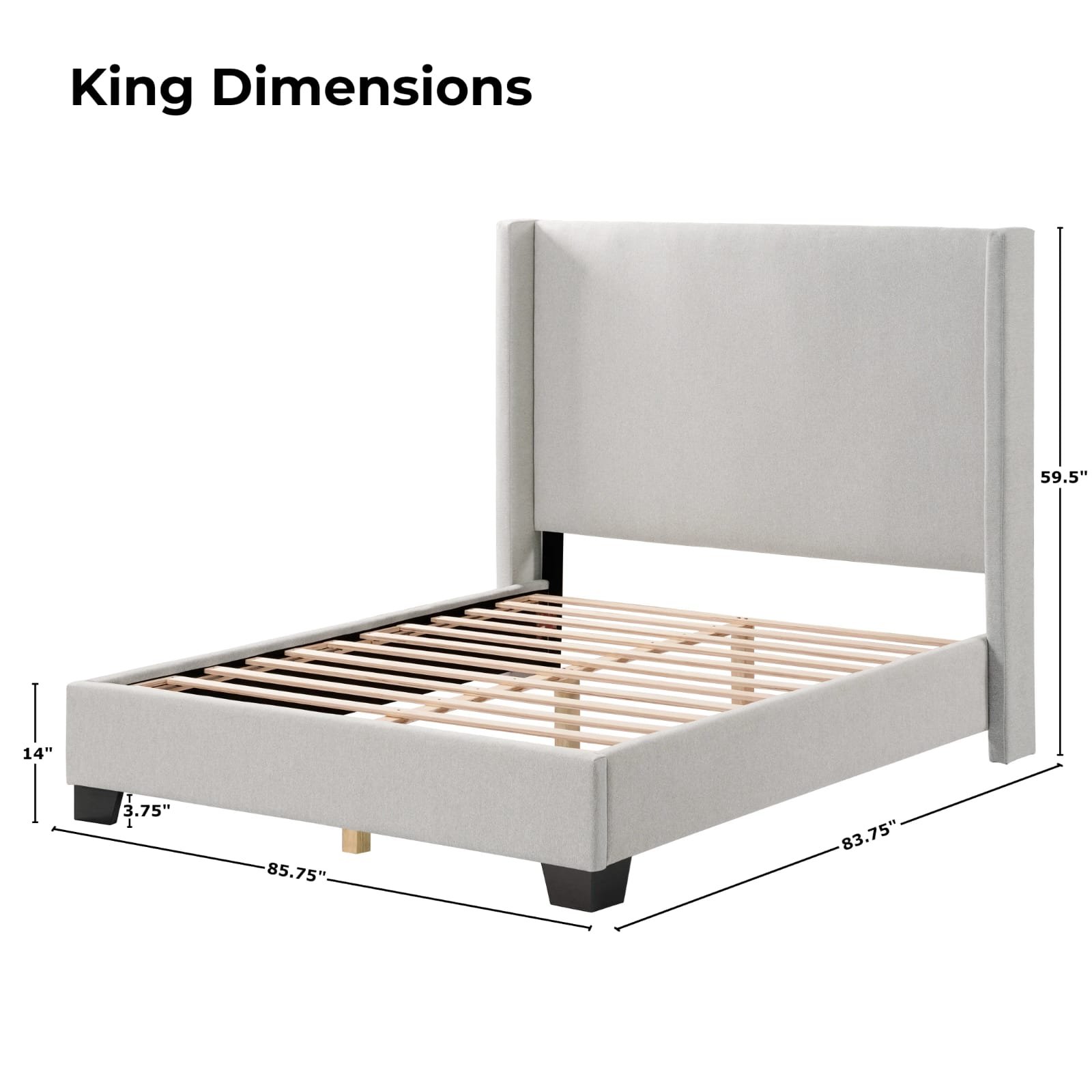 Elevate your bedroom’s aesthetic with our Elegant Light Grey Wingback Platform Bed, a statement piece that blends modern glam with timeless sophistication. Featuring a grand high headboard, this bed is designed to add a touch of luxury to any space. The plush upholstery in a calming light grey tone not only enhances its visual appeal but also ensures a soft, inviting surface for ultimate comfort.