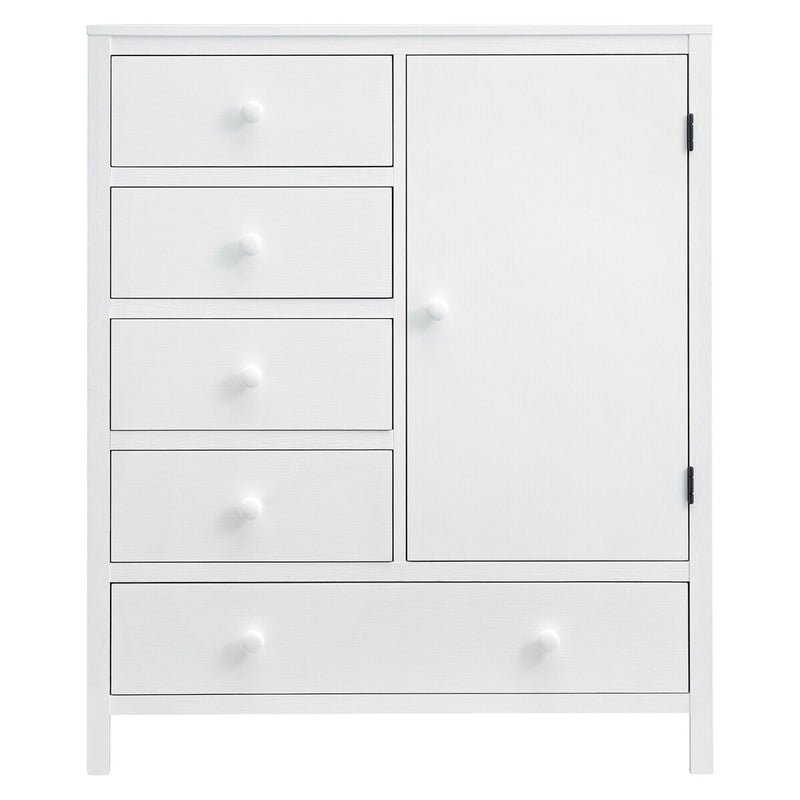 Versatile Storage Design – Includes a wardrobe with a hanging rod and multiple drawers for clothes, toys, or linens.