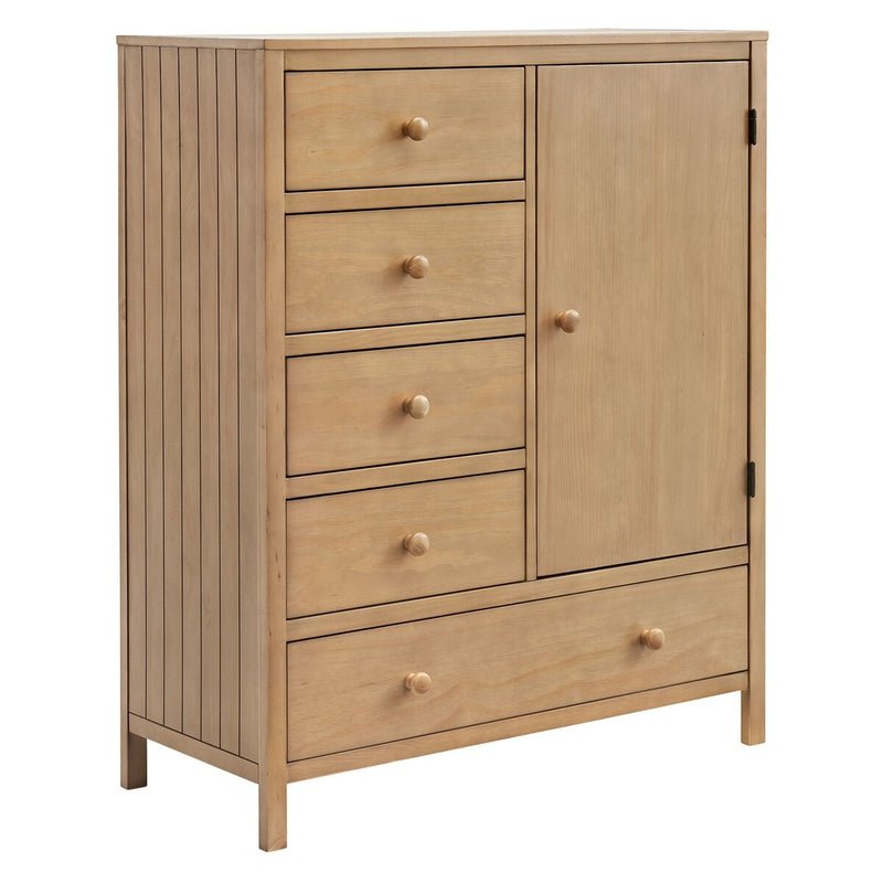 Transform your child’s room with the Everlee Chifferobe, crafted from beautiful honey-toned wood for a warm, natural feel. This multifunctional wardrobe combines a classic look with modern storage solutions, perfect for nurseries, kids’ bedrooms, or any compact space needing a stylish organizing solution.