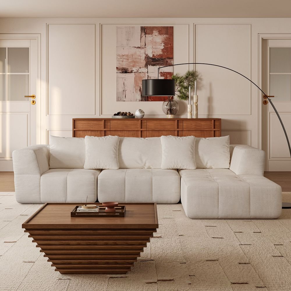PakUnique Ivory Cloud L-Shaped Sectional Sofa – Modular Comfort for Pakistani Living Rooms