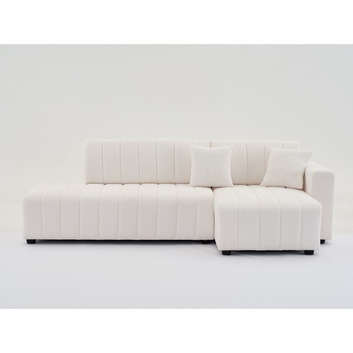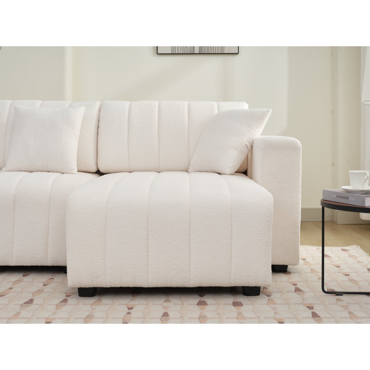 Crafted with care, this sectional features a plush lamb wool finish in a neutral tone that brightens up your space. The spacious chaise lounge is perfect for stretching out and relaxing after a long day, making this a favorite for families, entertainers, or anyone who values relaxation and style.