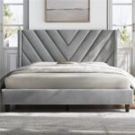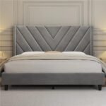 Define Your Style: Modern Grey Chevron Upholstered Platform Bed – Contemporary Bedroom Furniture Pakistan!