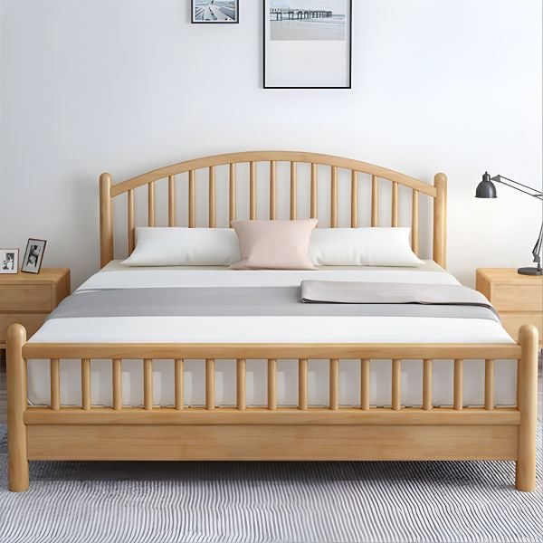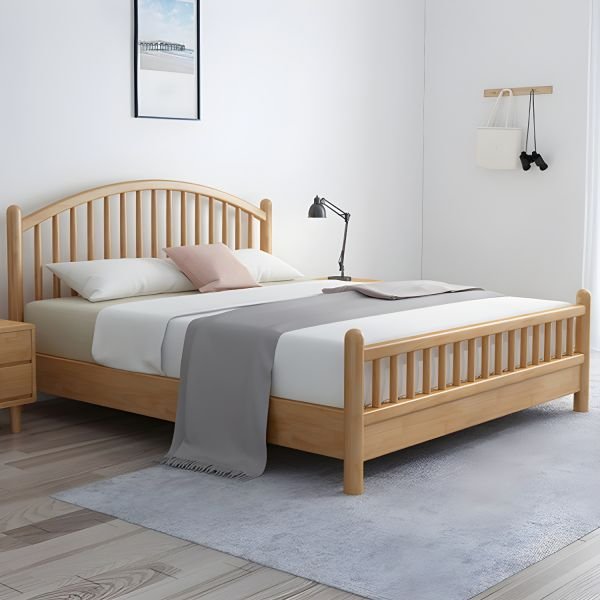 Materials: High-Quality Solid Wood (e.g., Acacia, Rubberwood, or Ash) with a Natural Finish, and a robust Slat Support System.
