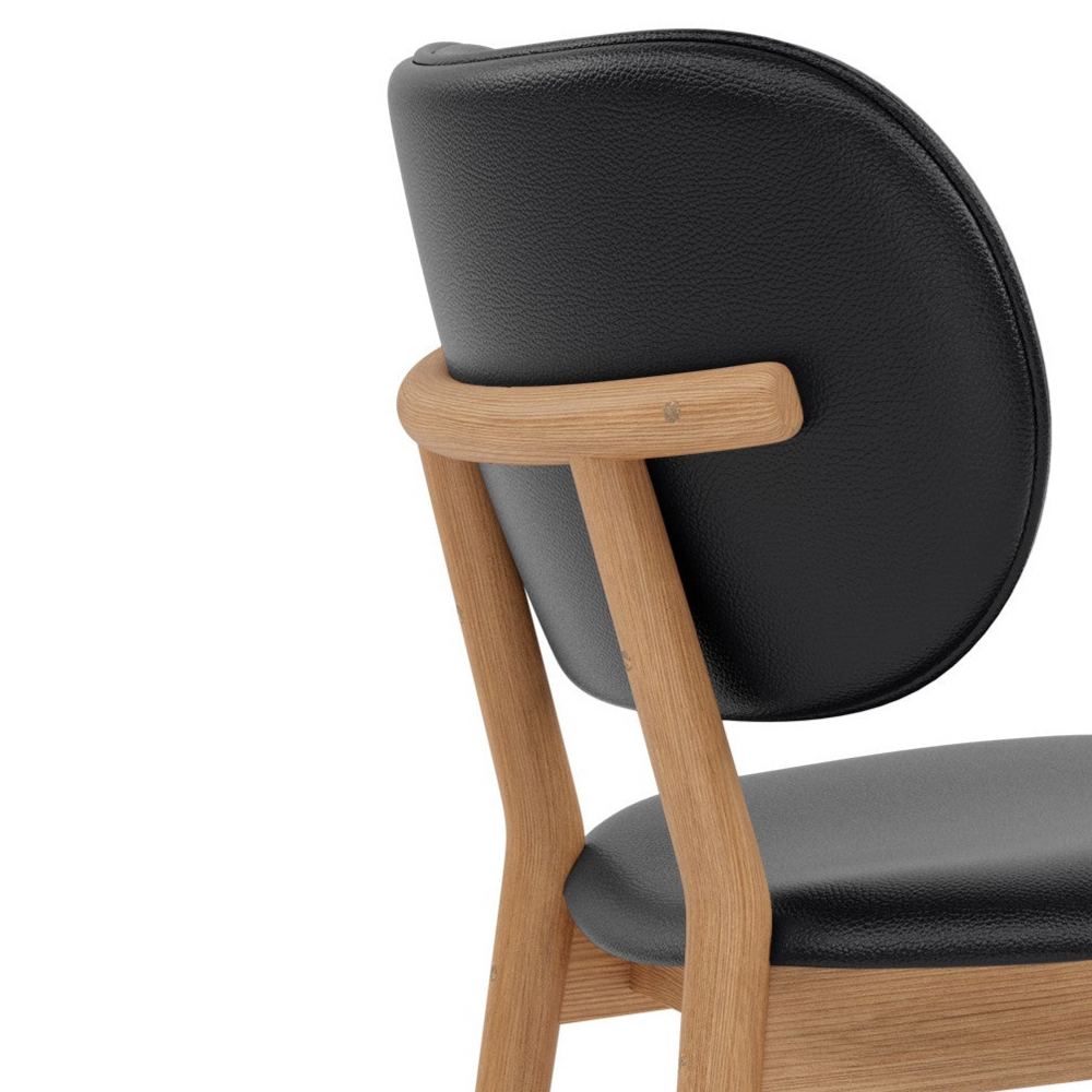 Solid Oak Wood Legs: Sturdy oak legs provide lasting support and add a natural warmth that contrasts beautifully with the sleek black seat.