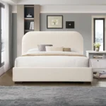 Transform your bedroom with the perfect fusion of contemporary design and cozy luxury with the Reigen Boucle Platform Bed. Featuring a striking arched headboard wrapped in soft, premium boucle fabric, this bed brings tactile warmth and visual sophistication to any modern or minimalist setting.