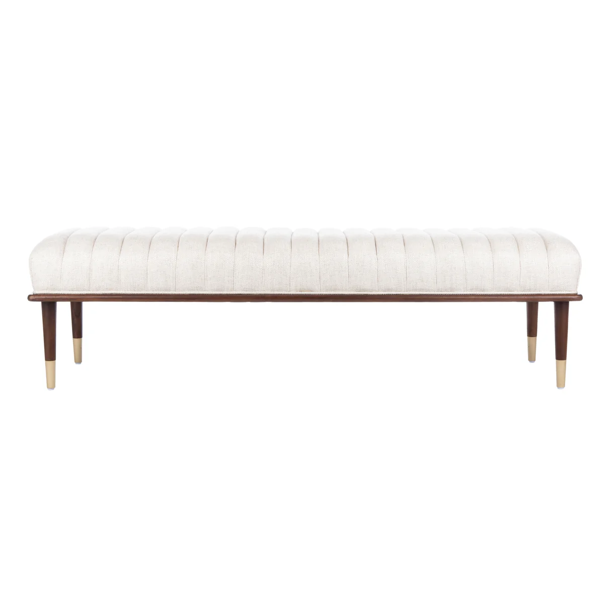 Perfect for bedrooms, living rooms, or entryways, the Felicienne bench offers ample seating space without compromising on elegance. The neutral fabric blends beautifully with a variety of interiors, while the solid wood frame ensures strength and durability.