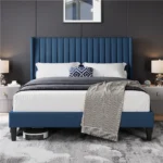 Add elegance to your bedroom with this modern wingback upholstered bed frame. Tufted fabric, sturdy wood slats, and no box spring needed — perfect for comfort and sophistication.