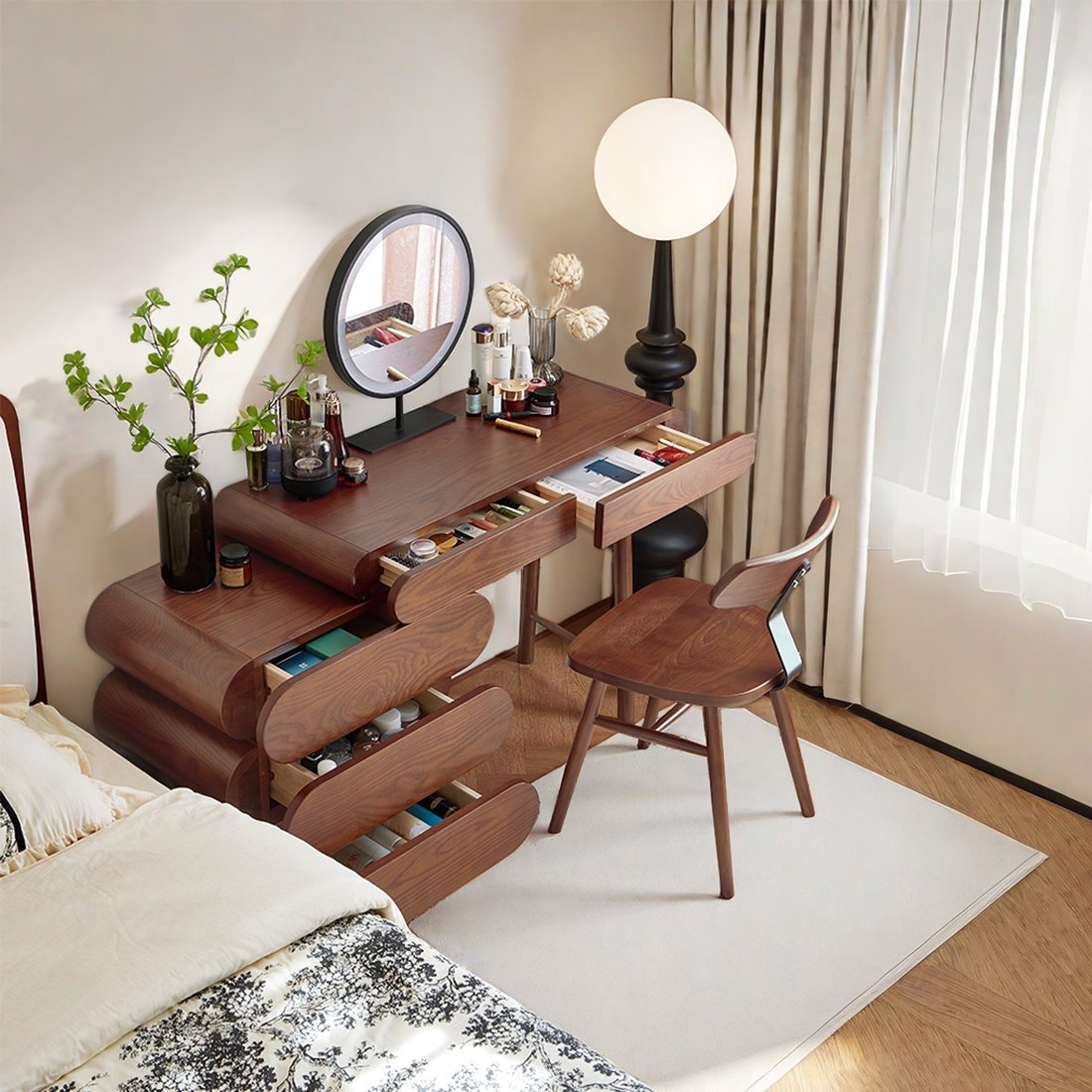 Whether you’re prepping for a workday or a wedding, the PakUnique Yeleini Vanity Table turns every beauty routine into a luxurious ritual.
