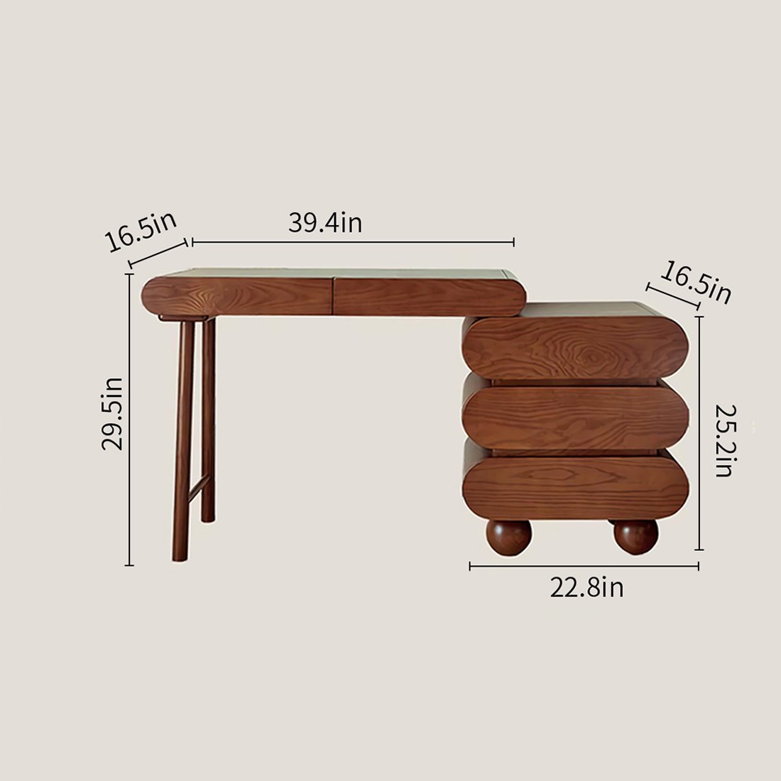 Crafted from durable MDF wood, the vanity features a clean-lined silhouette and comes in a soft beige or white finish, perfect for blending into both classic and contemporary interiors. The tabletop has enough room to keep your makeup, skincare, and accessories within easy reach, while the drawers allow for clutter-free storage.