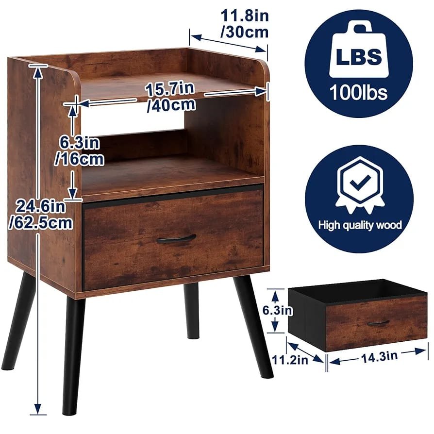 Spacious Drawer: Store glasses, remotes, and nighttime essentials
